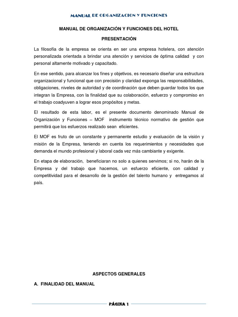 Manual De Organizacion Y Funcion De Un Hotel Pdf Hotel Bancos