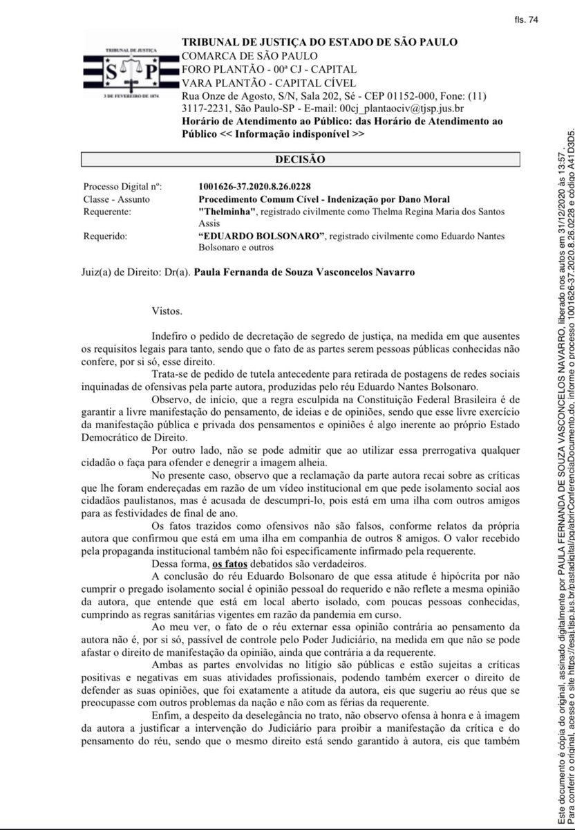 Eduardo Bolsonaro On Twitter Juiza Indefere Liminar Contra Mim Recentemente Postei Que Thelminha Ex Bbb Era Hipocrita Por Ter Ganho R 180 000 Para Fazer Video Para A Prefeitura De Sao Paulo Dizendo